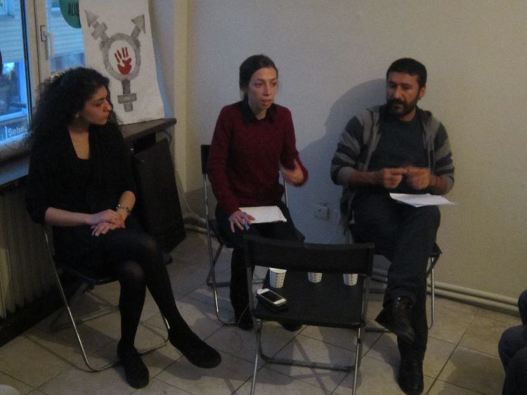 Moderatör’lüğünü Lamdaistanbul aktivisti Hüma Talay’ın yaptığı etkinliğe konuşmacı olarak Vicdani Ret Derneğinden Ercan Jan Aktaş ve Anarşist Kadınlar’dan Didem Deniz Erbak katıldı.