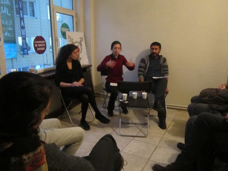 Lamdaistanbul’da gerçekleşen etkinlikte Hüma Talay’ın “Lamdaistanbul olarak Kasım ayı etkinliklerimizi özellikle coğrafyamızda yaşanan savaş/şiddet ikliminden dolayı barış teması üzerinden hazırladık, bu bağlamda her hafta bir etkinlik planladık. Anti-militarist mücadele ve vicdani ret de bu etkinliklerden biri olarak örgütlendi, bu etkinliği Vicdani Ret Derneği ile birlikte örgütledik” sözleriyle yaptığı açıştan sonra Kobani sürecini daha yakından izleyen ve Kobani’ye de gitmiş olan vicdani retçi Ercan Jan Aktaş söz aldı.
