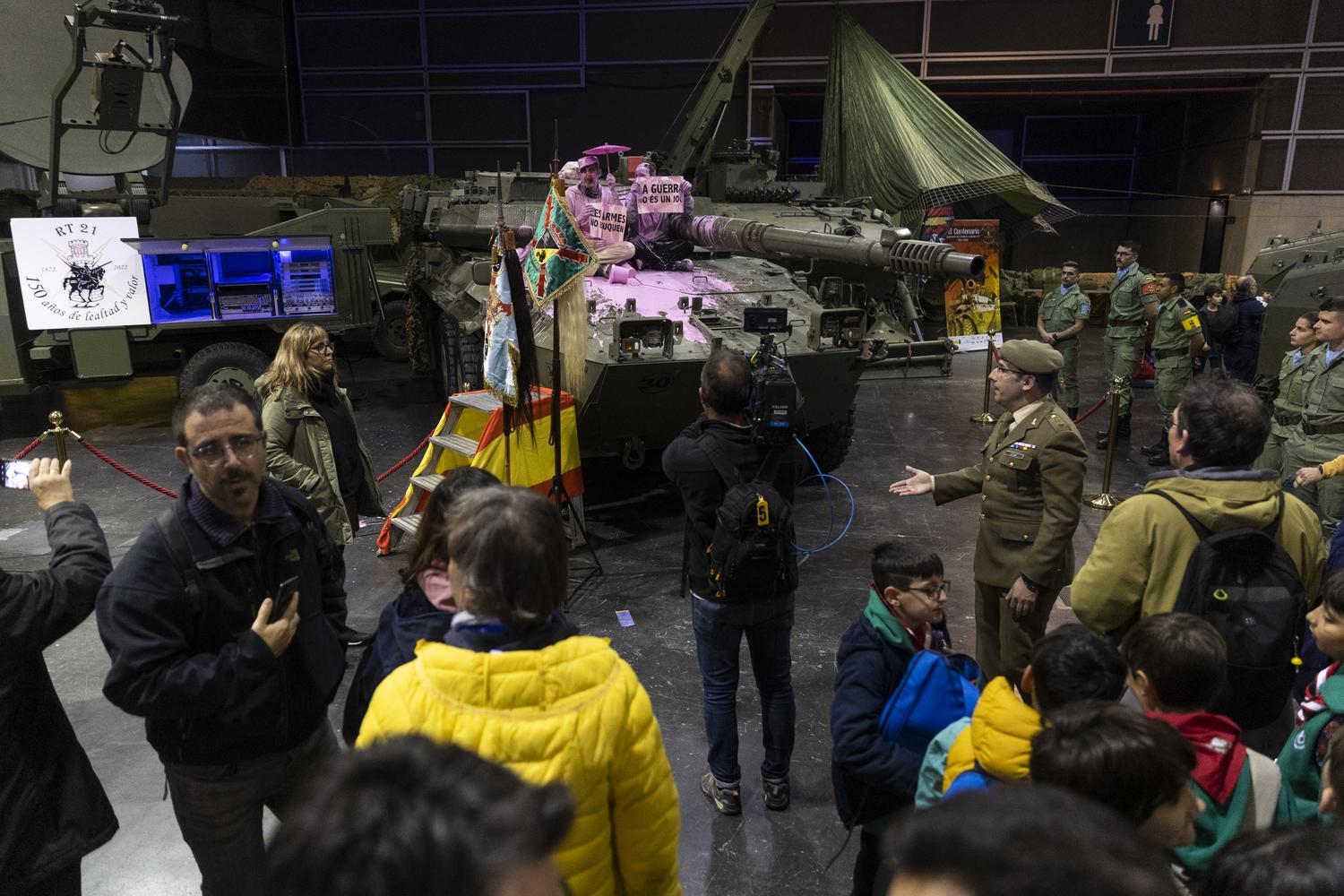 Palyaço kıyafetleri giymiş bazı anti-militarist aktivistler, olayı “askerden arındırmak” ve uzaydaki askeri varlığı ve diğer silahlı kurumları protesto etmek için Valencia’daki Expojove gençlik fuarındaki Ordu tankını pembeye boyadı. Eylem, 26 Aralık Salı sabahı öğleden sonra saat bir civarında standı ziyaret eden belediye heyetinin hazır bulunmasıyla aynı zamana denk gelecek şekilde gerçekleşti.