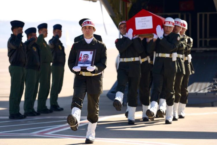 Şehit Eyüp Güner’in Türk Bayrağına sarılı naaşı, Tokat’tan askeri uçakla Gaziantep Havalimanı’na getirildi ve protokol üyelerince askeri törenle karşılandı.
