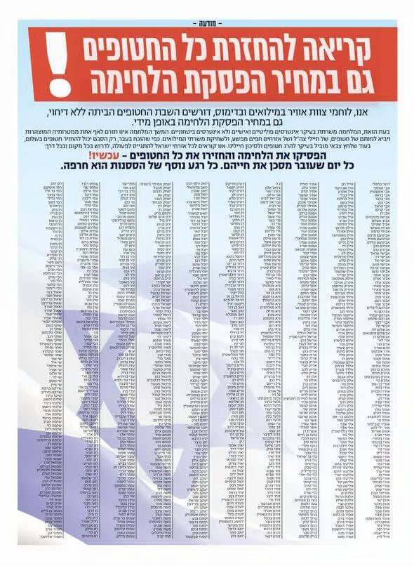 Söz konusu toplantılardan birinde, imzacı askerlerin ihraç tehdidinin yasal ve ahlaki kırmızı çizgileri aştığını ve ifade özgürlüğünü kısıtladığını söyleyerek itiraz ettiğine ve İsrail Hava Kuvvetlerinin faaliyetlerinin Gazze Şeridi’ndeki İsrailli esirlerin hayatlarını tehlikeye attığını ifade ettiğine dikkat çekildi.