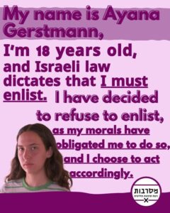 Adım Ayana Gerstmann, 18 yaşımdayım. Yasalara göre askere alınmam gerekiyor. Ahlak anlayışım gereği askere alınmayı reddetmeye karar verdim.