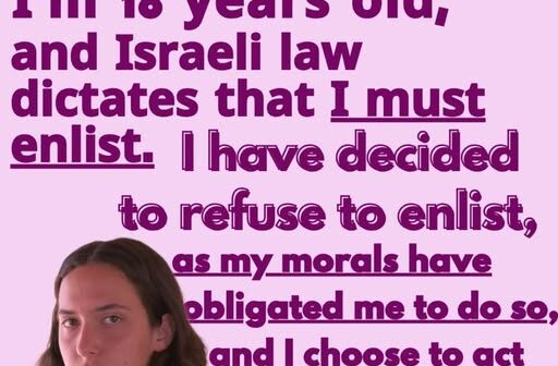 Şimdi, olgunlaştığım için, koşulsuz masumiyet söz konusu olamaz. Artık, ordunun milyonlarca insana çektirdiği acıları bildiğim halde sessiz kalmaya karar verirsem, bu suça ortak olacağımı biliyorum. Bugün, çekilen acılar karşısında sessiz kalamayacağımı biliyorum. Katliam ve yıkım karşısında sessiz kalamam. Bugün biliyorum ki, orduya katılmak sessizlikten daha kötüdür: Milyonlara zarar veren bir sistemle iş birliği yapmaktır. Bu yüzden reddediyorum ve bunu yüksek sesle yapıyorum. İş birliği yapmayacağım ve benim adıma en ağır vahşetin gerçekleştirilmesine olanak tanıyan sessizliğin bir parçası olmayacağım. Bu ülkenin bir vatandaşı olarak açıkça söylüyorum: Gazze’nin yıkımına da, işgalciliğe de karşıyım! Sessiz kalmayı reddediyorum. Umarım sesim insanların gözlerini açar ve onların adlarına yapılanların farkına varmalarını sağlar. Ta ki onlar da artık sessiz kalmayana kadar.