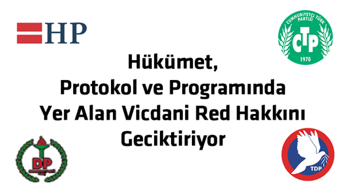 CTP-HP-TDP-DP hükümeti, hem koalisyon protokolü hem de hükümet programında yer alan vicdani red konusuyla ilgili henüz bir adım atmadı. Hükümetin adım atmakta gecikmesi, vicdani red hakkını kullanmak isteyen Halil Karpaşaoğlu’nu hapse girme tehlikesiyle karşı karşıya bırakıyor.