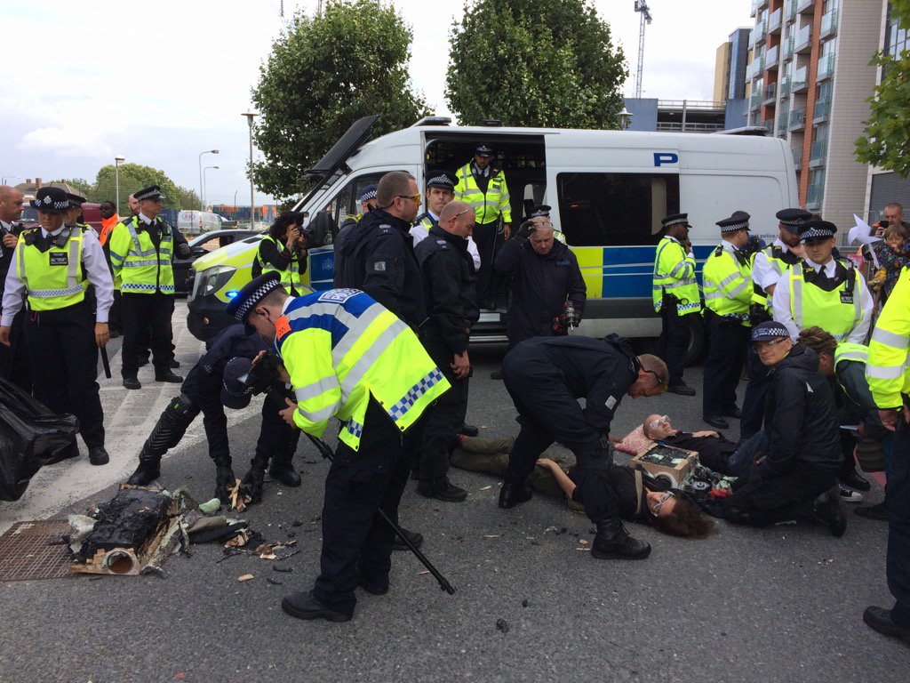 2015 yılında, Londra’da gerçekleşen eylemlere yüzlerce kişi katıldı. Fuarın hazırlanmasını ve ekipmanların geçişini engellemek üzere altı gün boyunca yollar eylemciler tarafından bloke edildi.