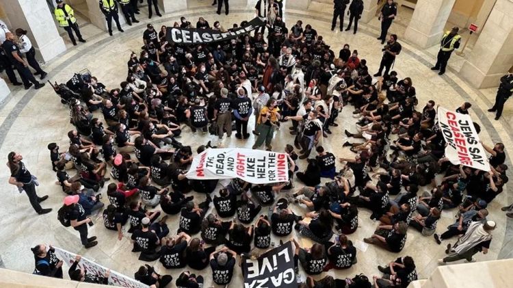 ABD’nin başkenti Washington’daki Kongre binasında ABD ve İsrail’in İran’a yönelik saldırılarına karşı yapılan protesto gösterisinde çok sayıda kişi gözaltına alındı.