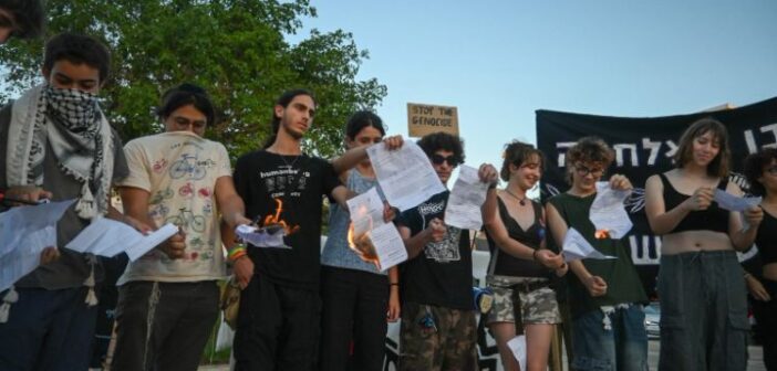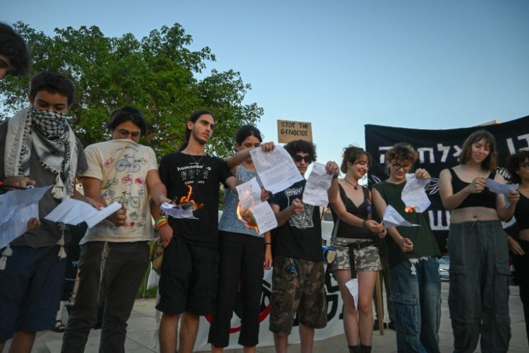 15 Temmuz 2025 Salı günü, Tel Aviv’in merkezindeki Habima Meydanı’nda onlarca İsrailli genç, askerlik celplerini ateşe vererek orduya katılmayı reddetti. Gazze’de yürütülen savaşı ve işlenen insan hakları ihlallerini protesto eden gençler, eylemlerinin vicdani bir duruş olduğunu vurguladı.
