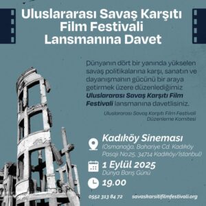 1 Eylül Dünya Barış Günü, Saat 19.00’da Kadıköy Sinemasında Uluslararası Savaş Karşıtı Film Festivali lansmanında buluşalım!